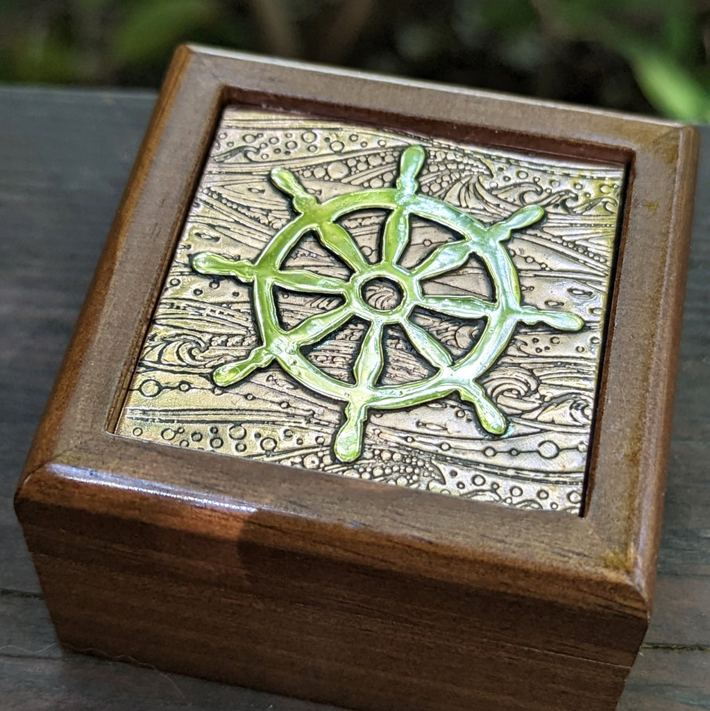 Diana Erickson, ArtistThis charming small wooden box would make a great gift. It can be produced in a custom design that has meaning to the recipient, A protective coating is then applied to the copper to prevent tarnish.