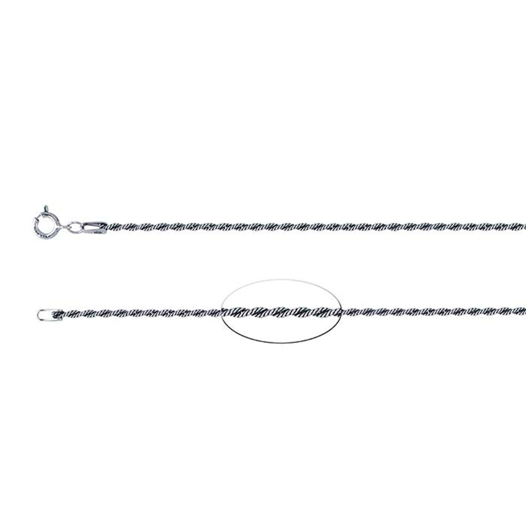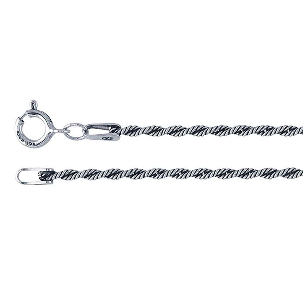 A lighter weight twisted rope chain  (1.7mm) that has a black patina on portions of it. This would go nicely with a small to medium sized pendant that also has a black patina with polished to give an oxidized appearance.