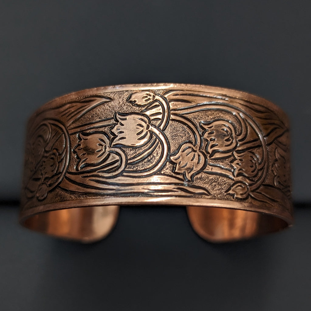 Diana Erickson, ArtistEnjoy the warm tones of this copper cuff with a historic pattern from the Cranston Fancy Wire Company. The outside has a protective coating to deter tarnish, while the inside is polished and untreated.