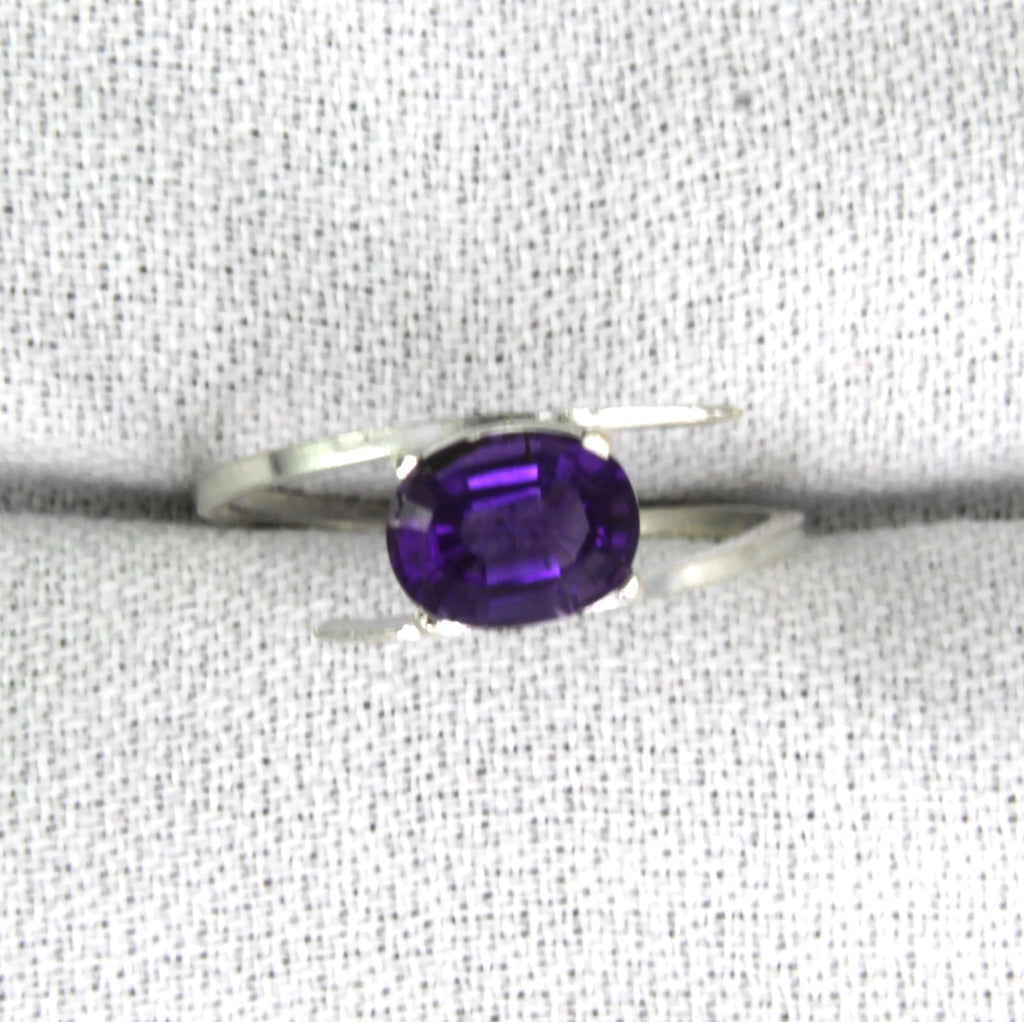 You will feel so glamorous wearing this bypass ring hand fabricated in sterling silver featuring a glorious deep purple 9mm x 7mm oval amethyst cut in an unusual quilted style.  Approximate size 9 3/4.